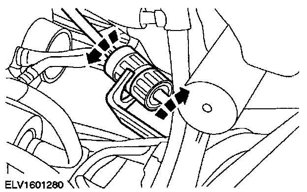 - Remove the shift cable from the bracket by twisting the bracket counterclockwise, and pull it downward out of the engine compartment.