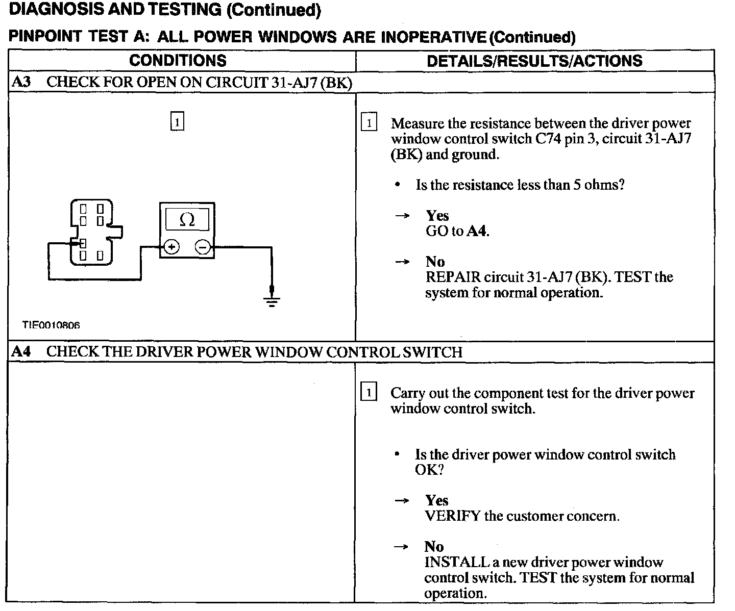 Test A: All Power Windows Are Inoperative
