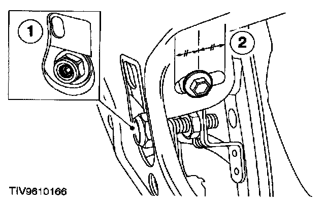 19. Close the door to the first door latch position and check the distance between the outer glass surface and the roof flange next to the second drip rail retainer hole (counted from the rear quarter window).