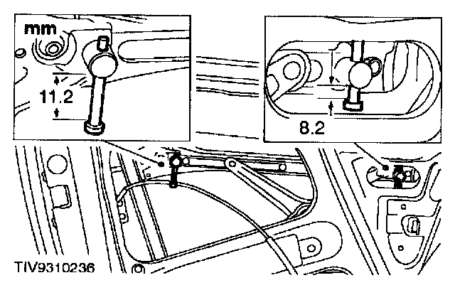 7. Check and adjust if necessary the window regulator height stops.