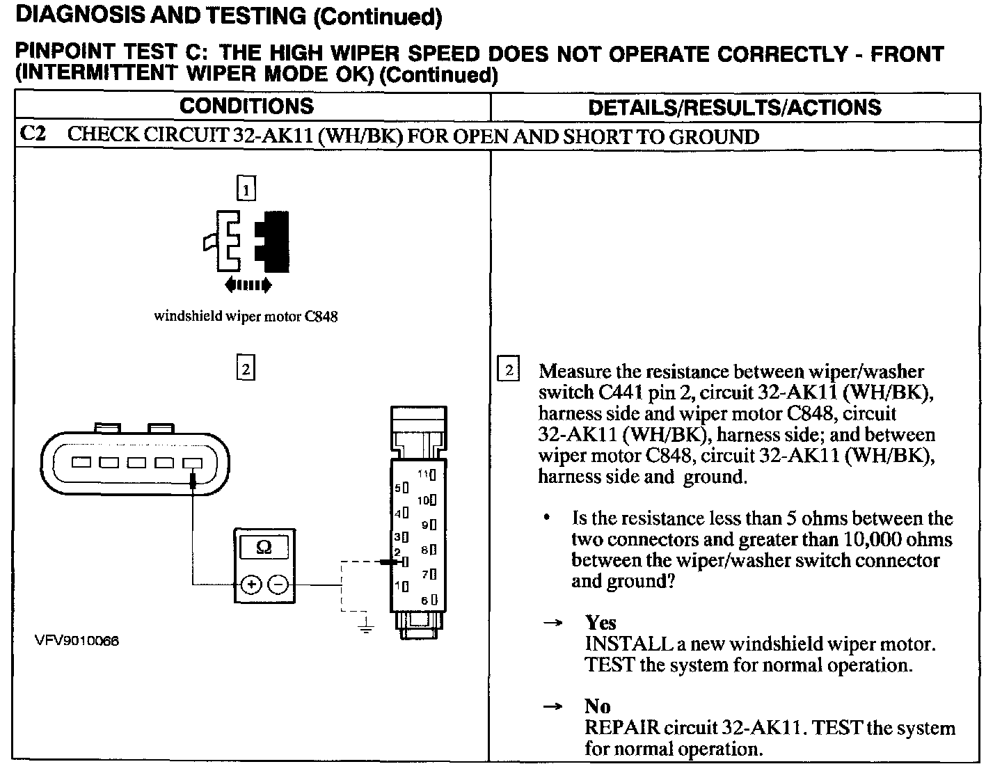 Test C: High Wiper Speed Does Not Operate Properly