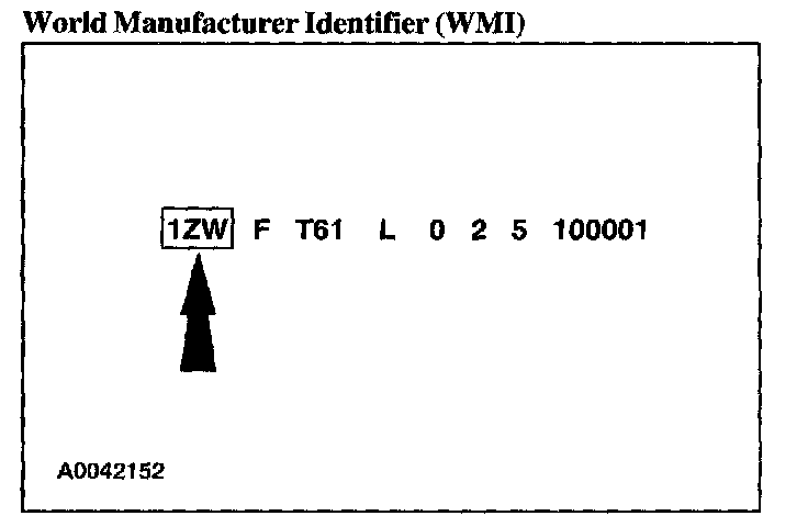 The first three Vehicle Identification Number (VIN) positions are the World Manufacturer Identifier (WMI).