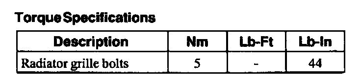 Torque Specifications:
