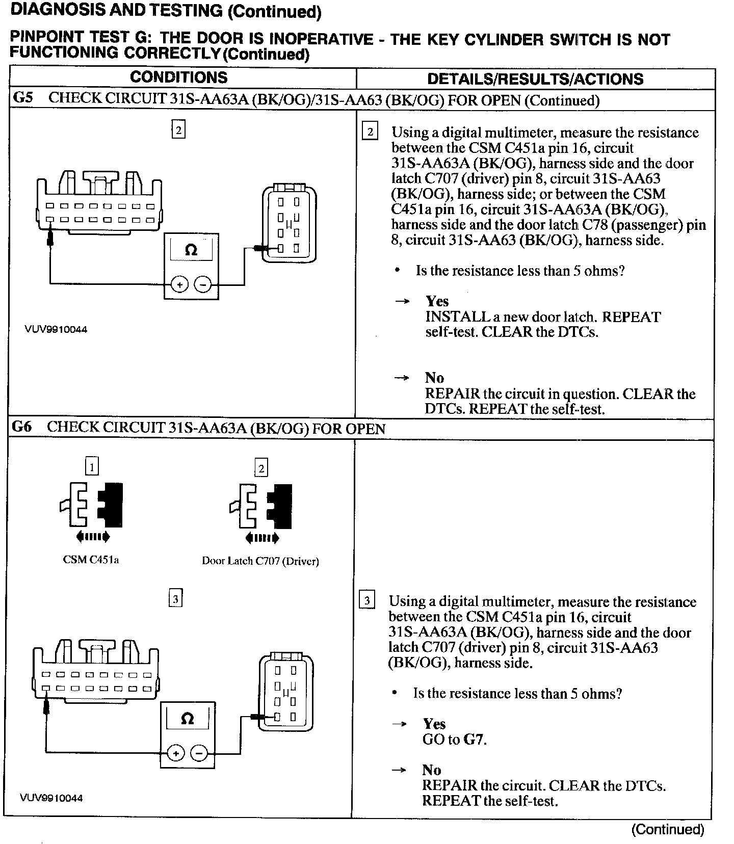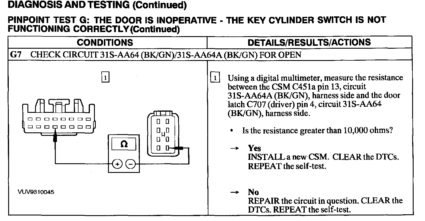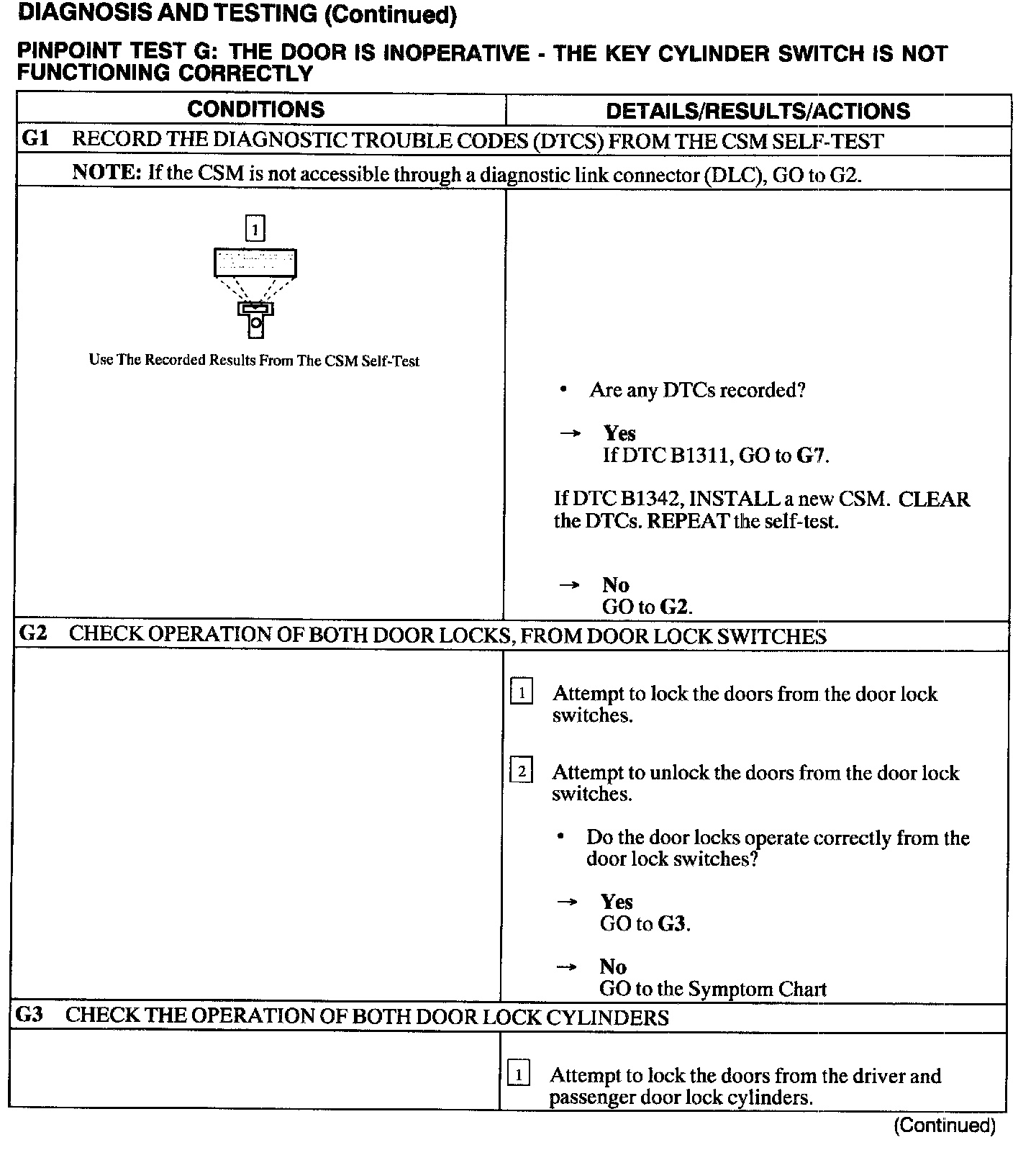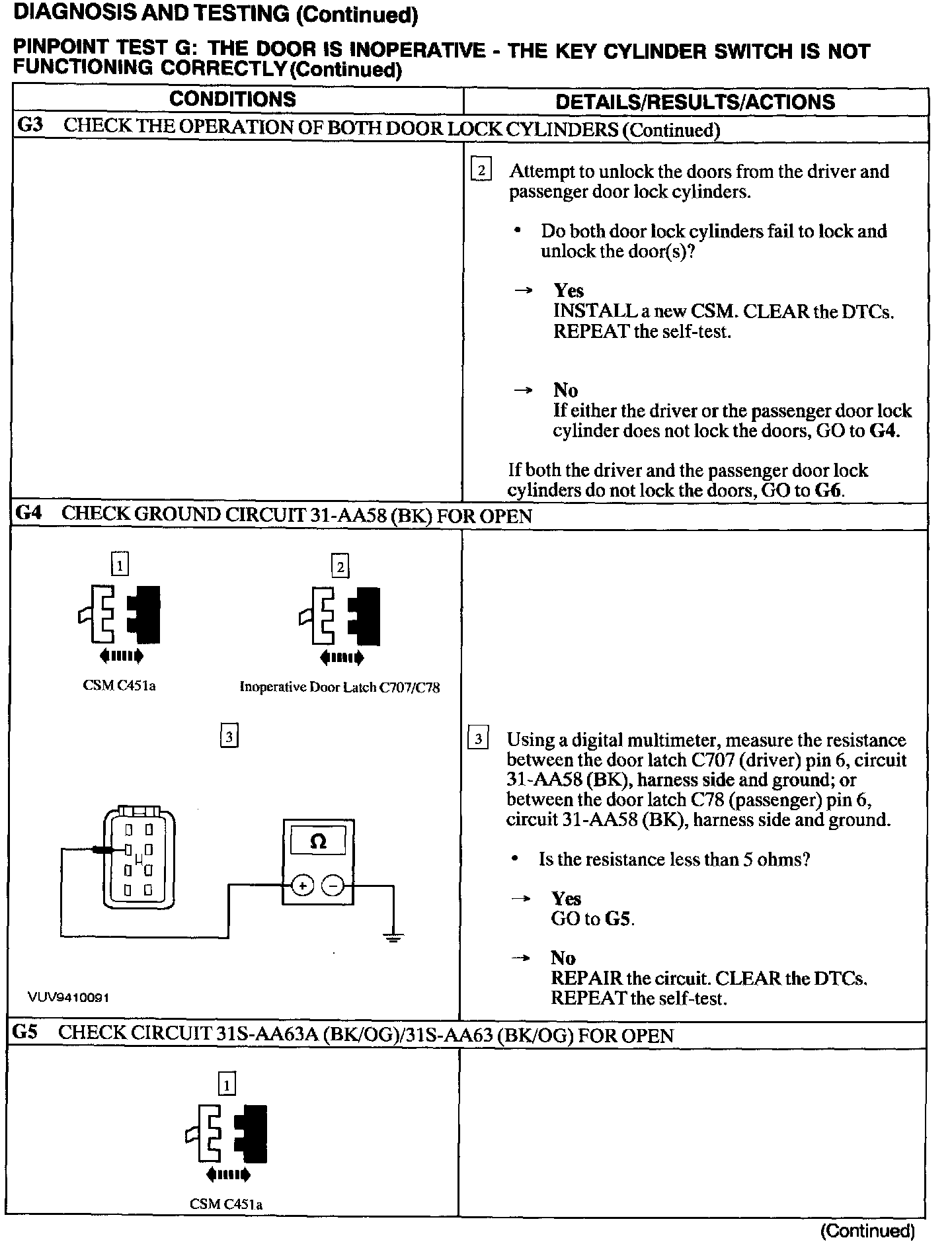 Test G: Door Is Inoperative - Key Cyl Sw. Functions Incorrectly