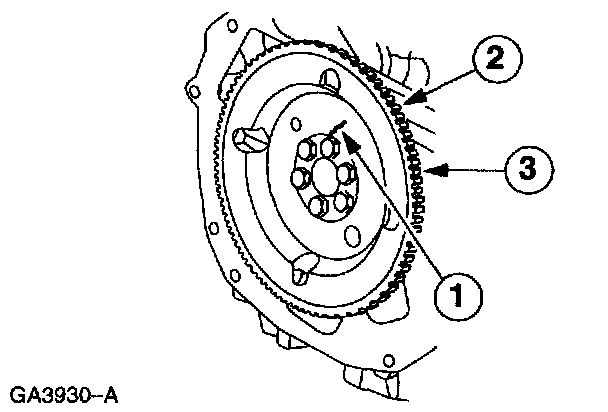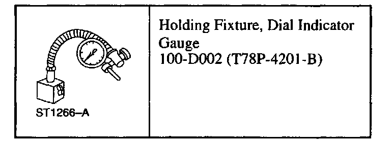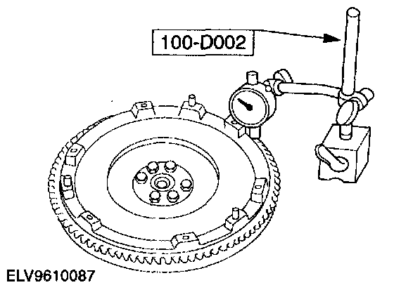 ^ Set the special tool on the flywheel ring gear surface and turn the flywheel to measure any runout.