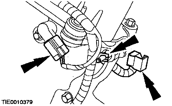 ^ Detach the wiring harness retainer and position the harness to one side.