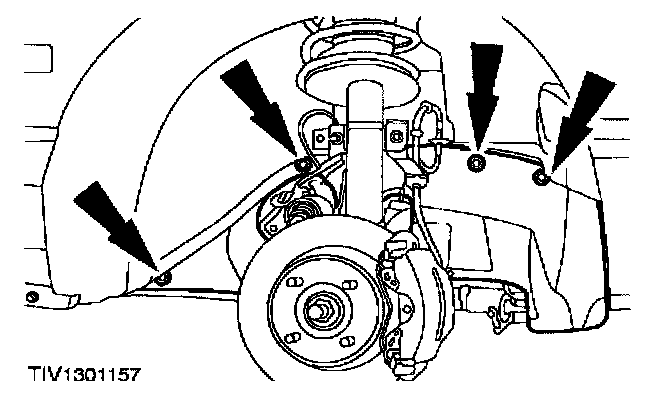 13. Remove the two front right-hand splash shield parts (wheel shown removed for charity).