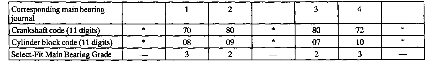 Main Bearing Journal/Crankshaft and Cylinder Block Code Chart
