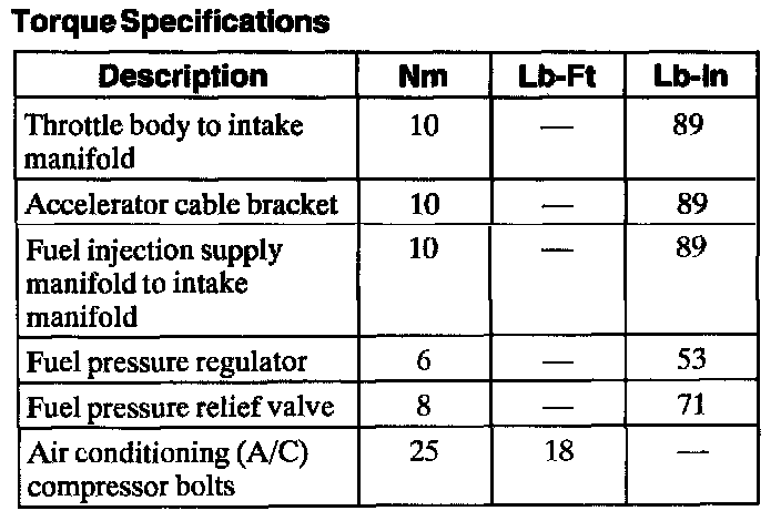 Torque Specifications: