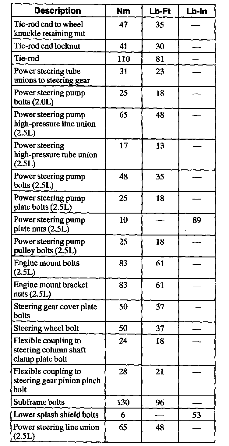 Torque Specifications