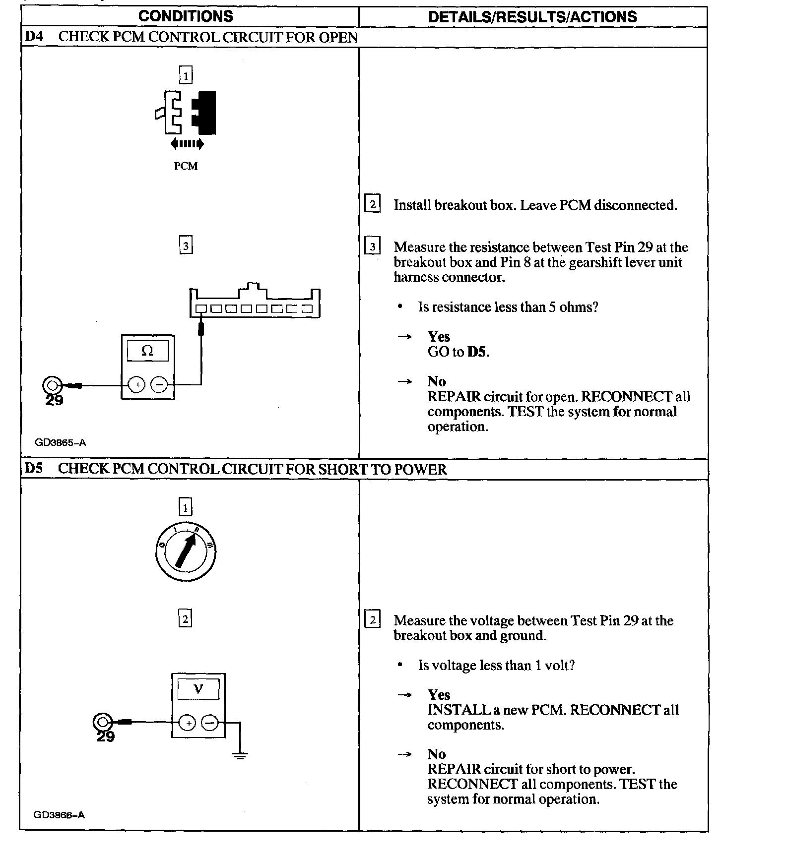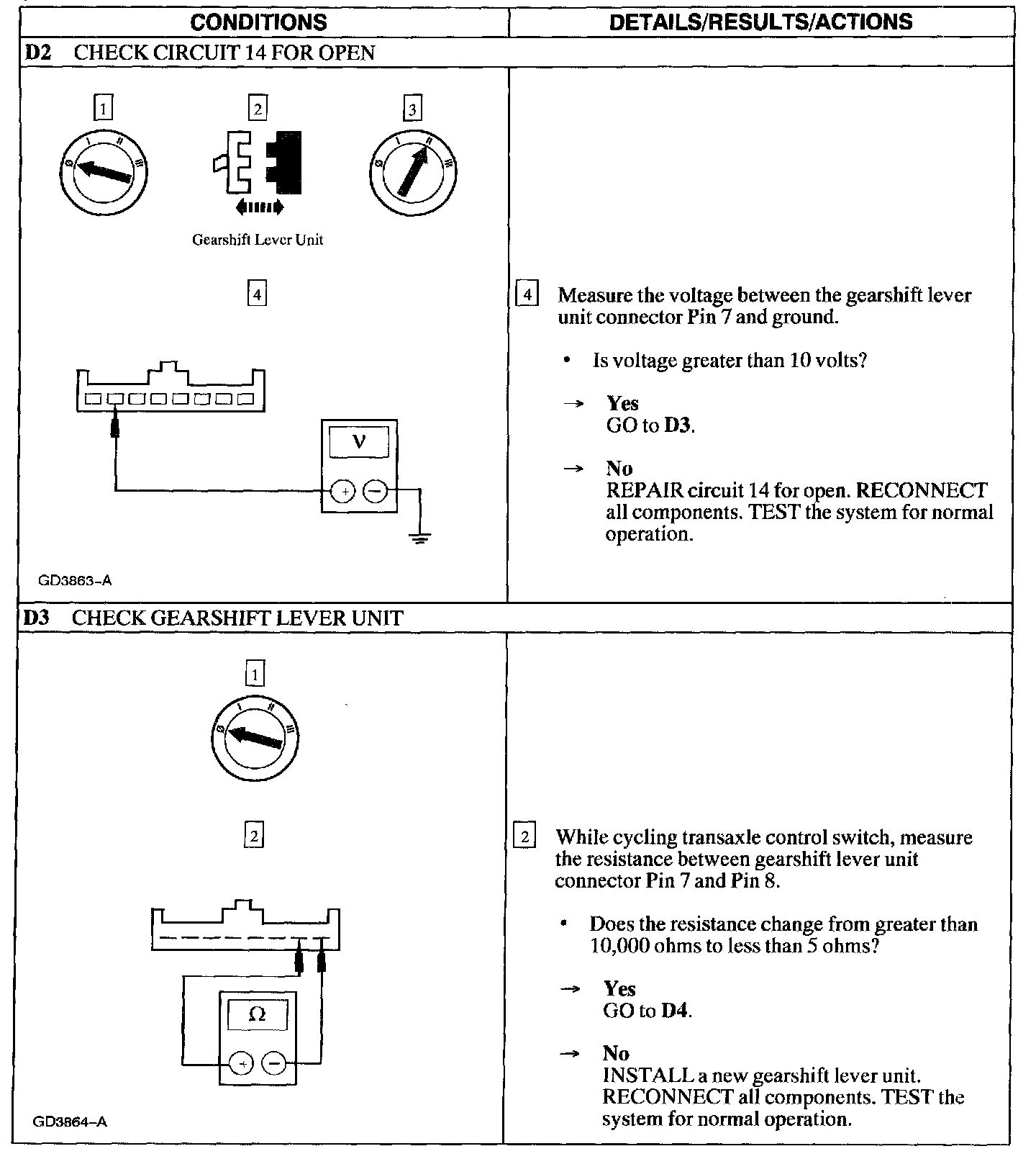 PINPOINT TEST D: THE TRANSAXLE CONTROL SWITCH IS NOT OPERATING PROPERLY