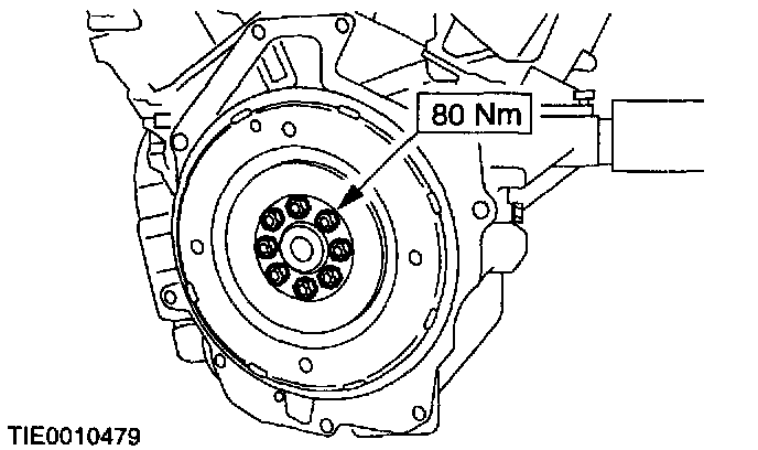 ^ Install the flywheel and tighten the bolts working diagonally.