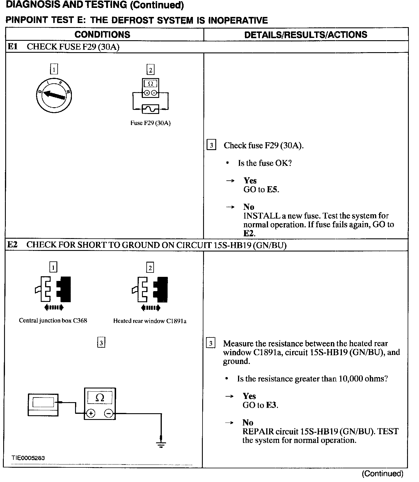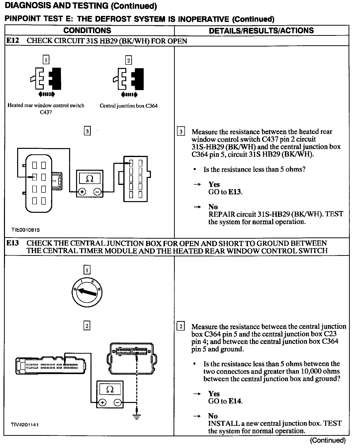 Test E: Defrost System Is Inoperative