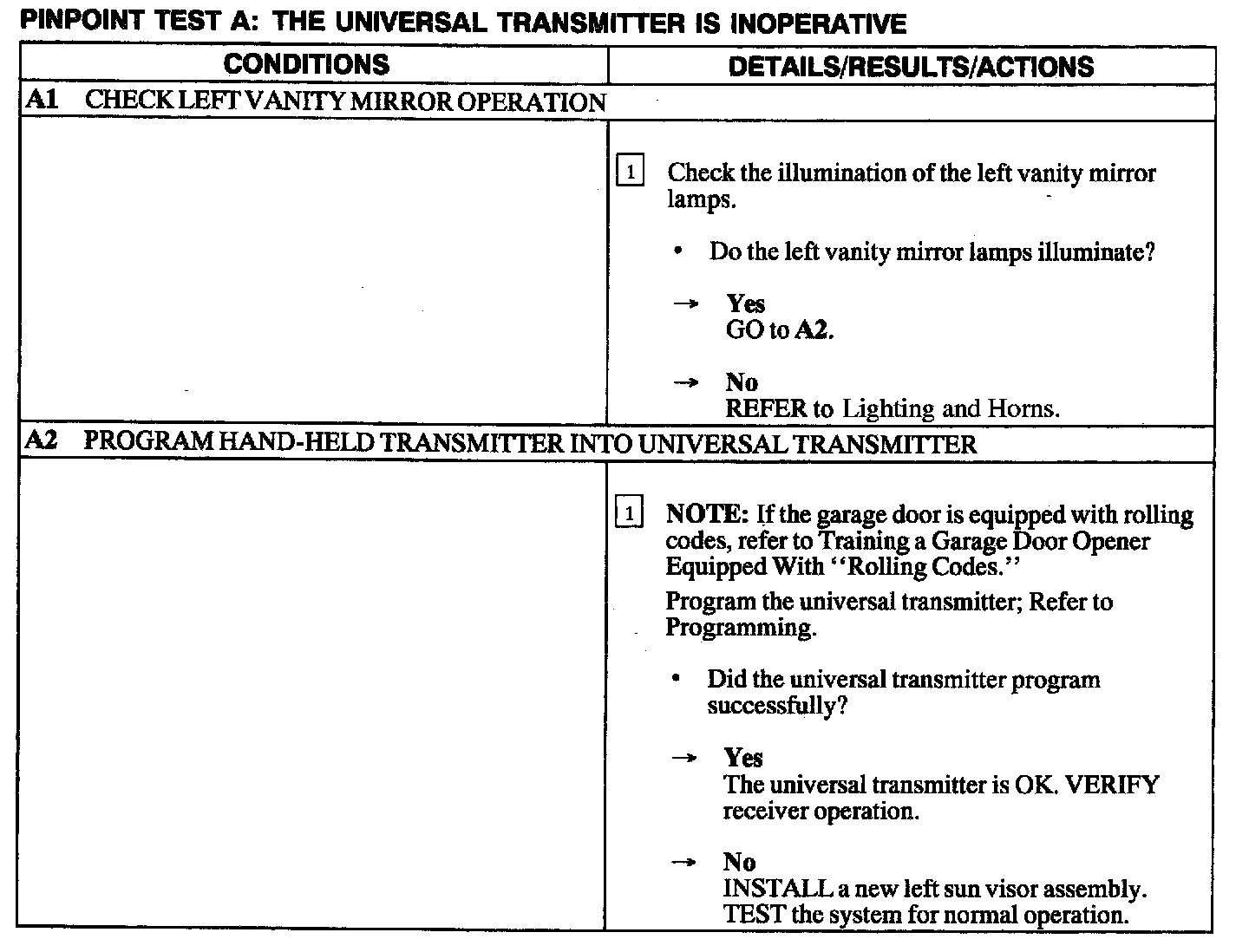 Test A: Universal Transmitter Is Inoperative