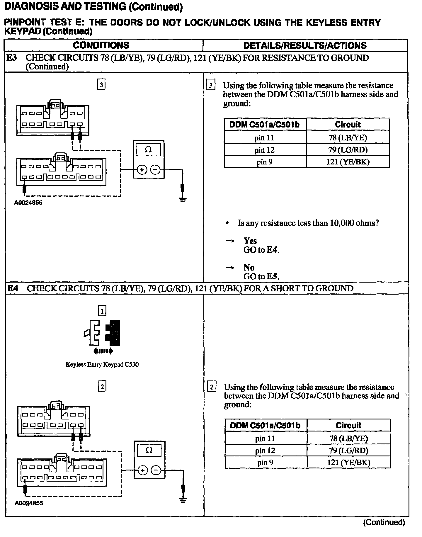 Test E: Doors Do Not Lock/Unlock Using The Keyless Entry Keypad