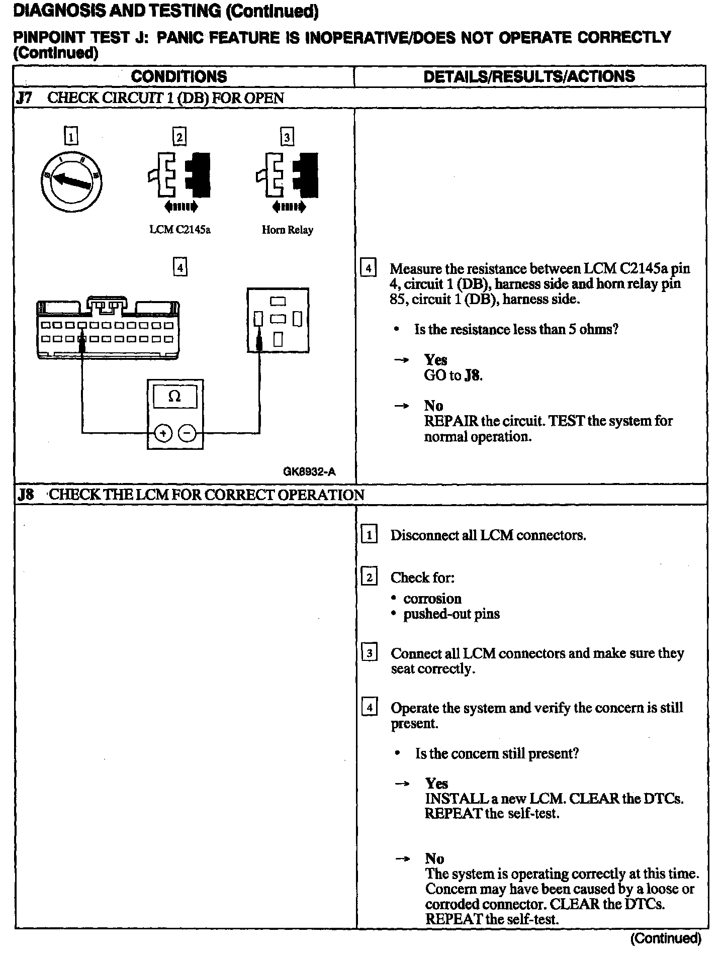 Test J: Panic Feature Is Inoperative/Does Not Operate Correctly