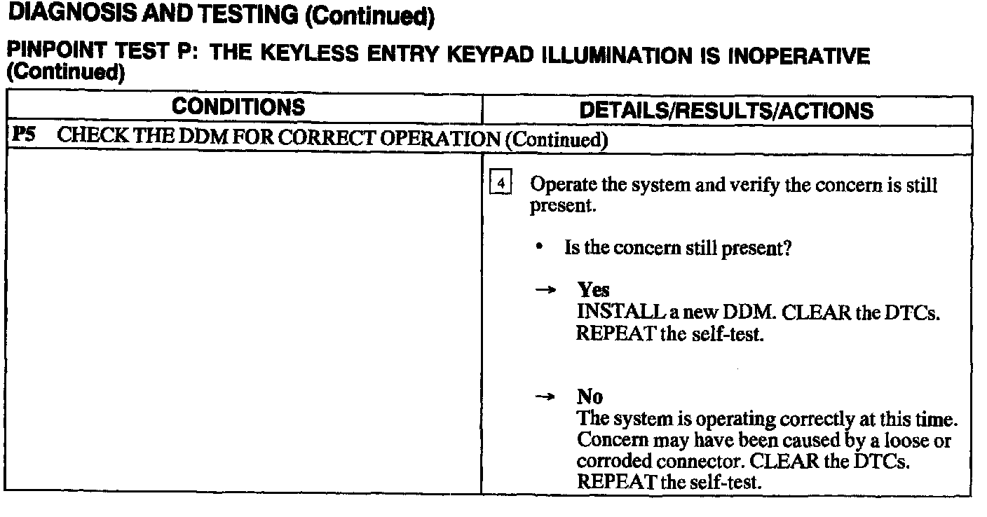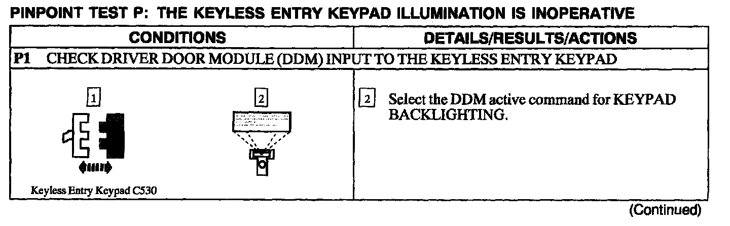 Test P: Keyless Entry Keypad Illumination Is Inoperative
