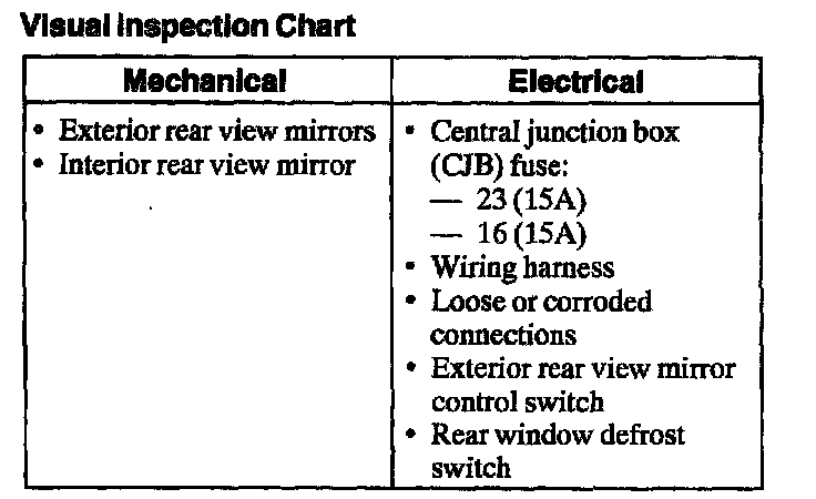 1. Verify the customer concern by operating the system.Visual Inspection Chart: