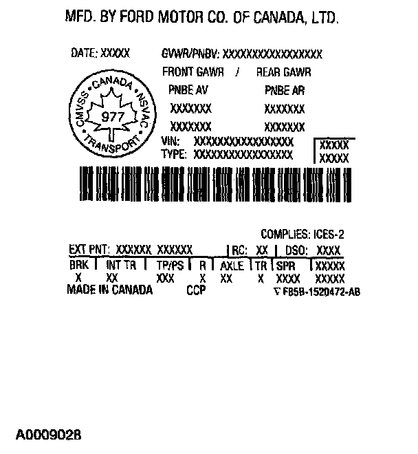 The upper portion of the Vehicle Certification (VC) label contains the manufacturer name, the month and year of manufacture, the certification statement and the VIN. It also includes Gross Vehicle Weight Ratings (GVWR). The VC label is located on the left-hand front doorjamb.