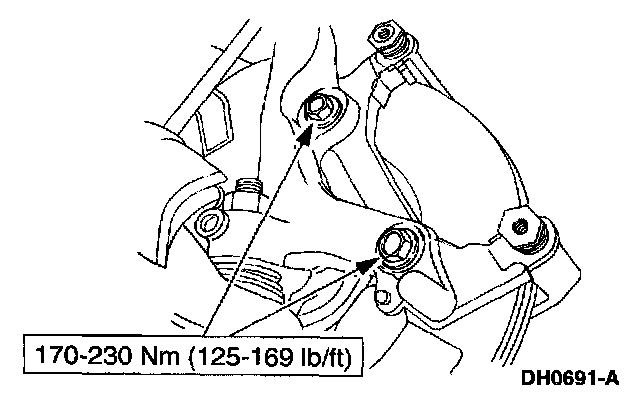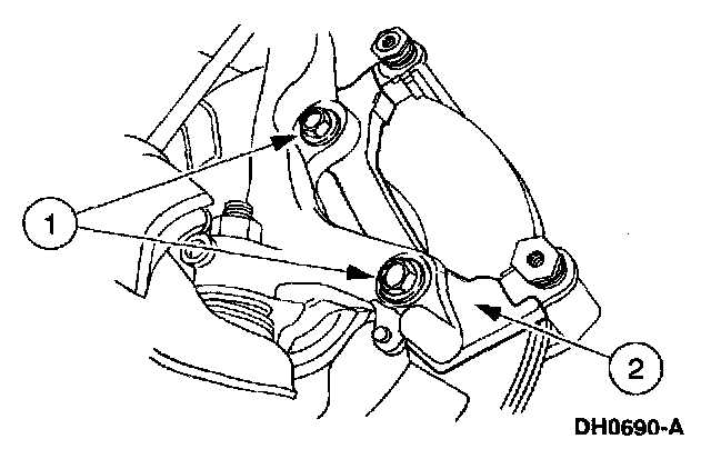 1 Remove and discard the two front disc brake caliper anchor plate bolts.