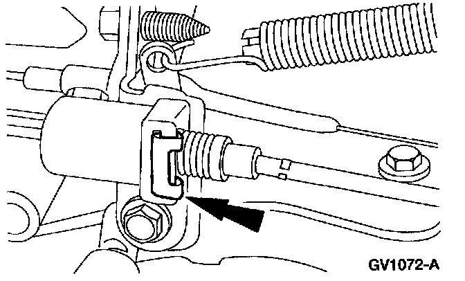 1. Remove the retaining clip from the speed control actuator cable adjuster.