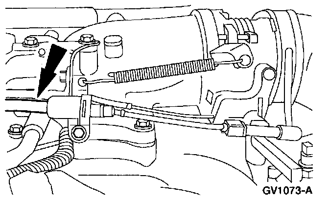 2. Pull on the speed control actuator cable to take up slack, then back off at least one notch so there is approximately 3 mm (0.118 in) of slack in the speed control actuator cable.