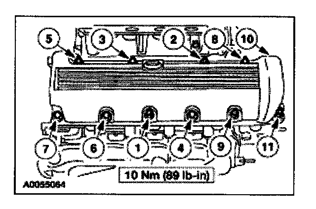 52. Install the gasket into the valve cover and position on the cylinder head. Tighten the bolts in the sequence shown.