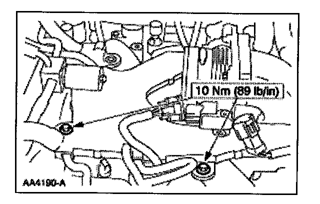 97. Connect the high pressure power steering tube to the power steering pump.