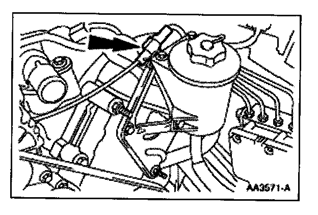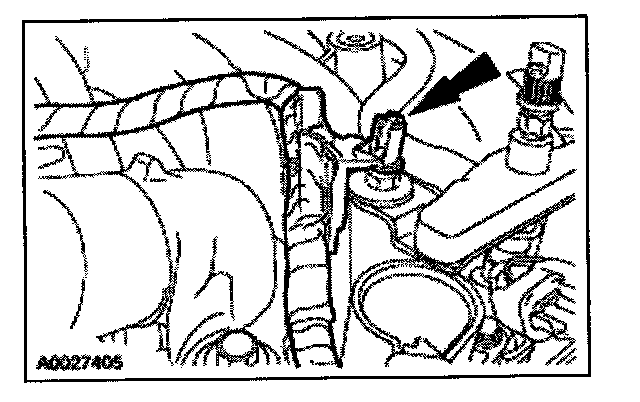 95. Position the power steering reservoir and install the two studs and one bolt.