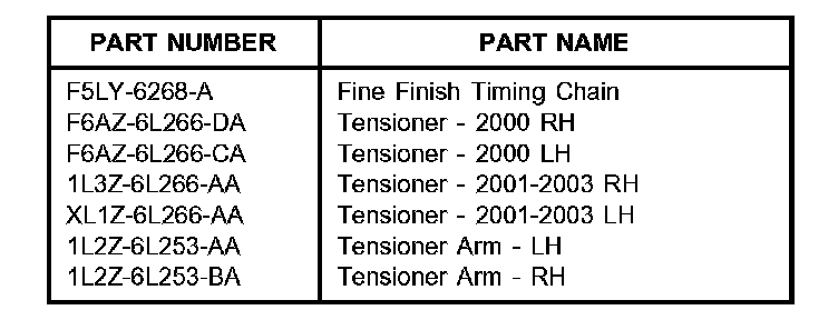 ^ Tensioner - 2001-2003 RH part 1L3Z-6L266-AA, LH part XL1Z-6L266-AA