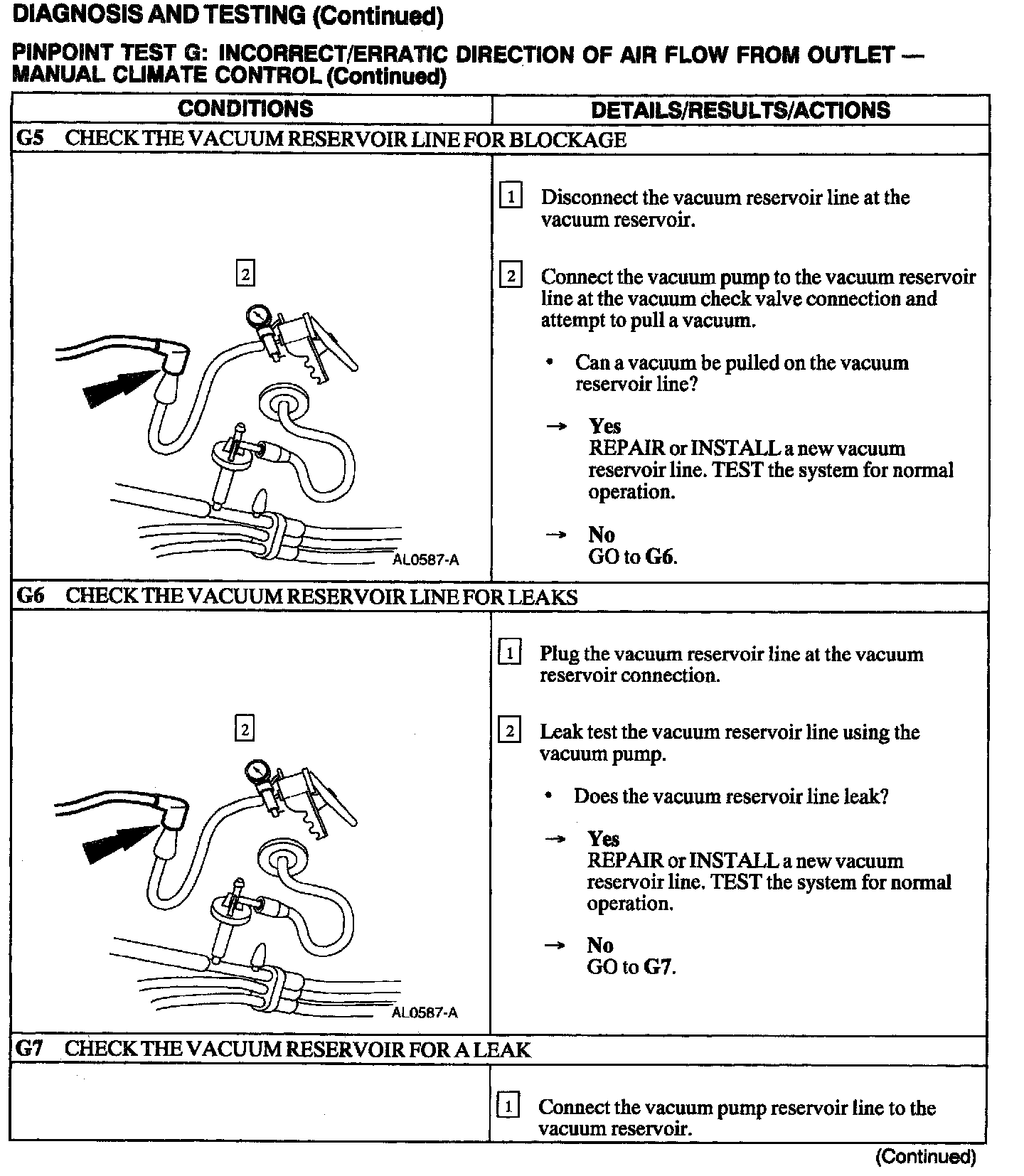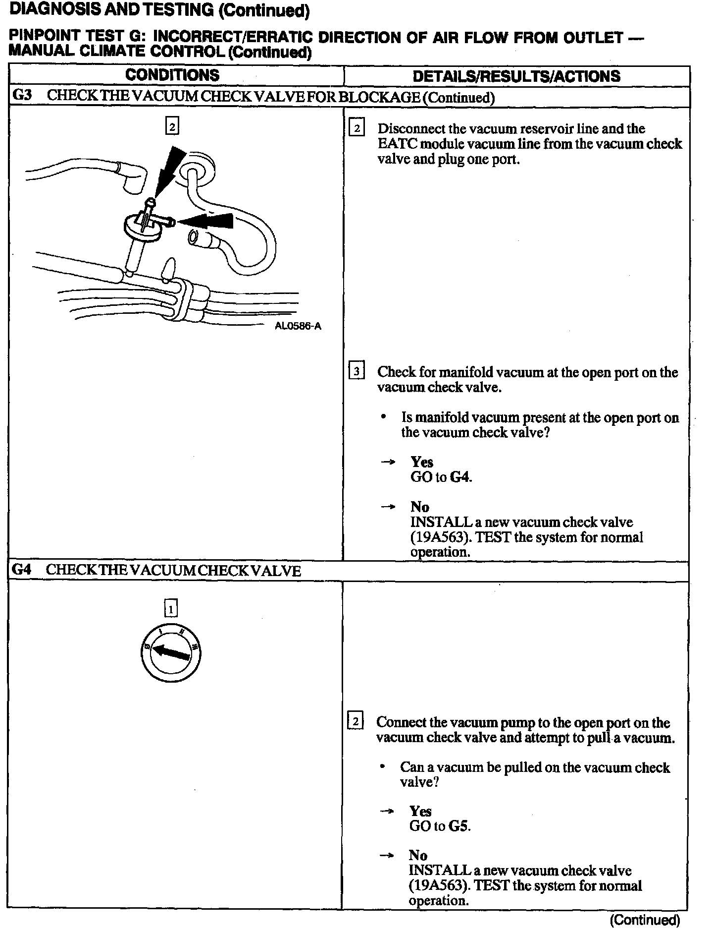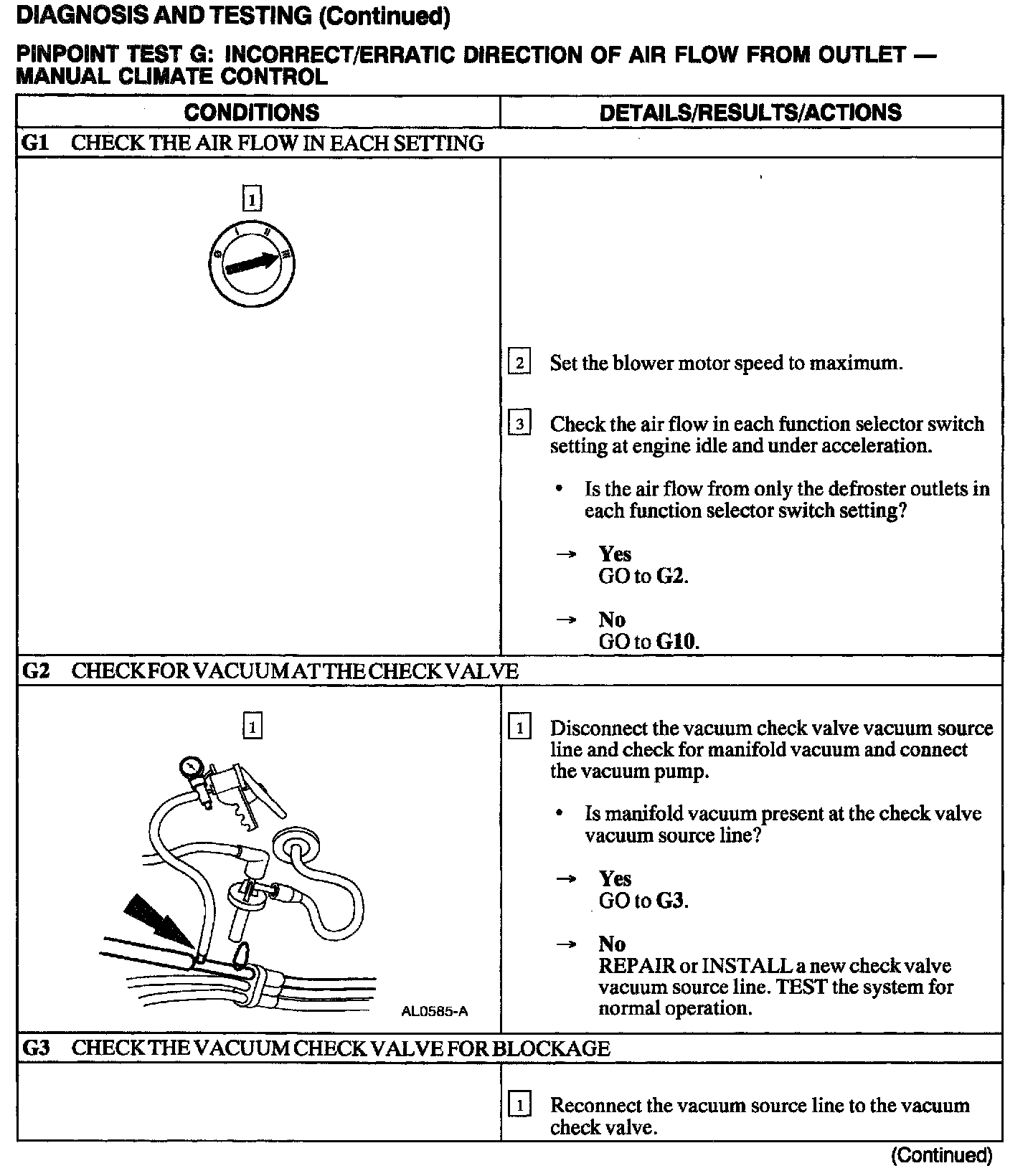 Test G: Incorrect/Erratic Air Flow From Outlet - Manual System