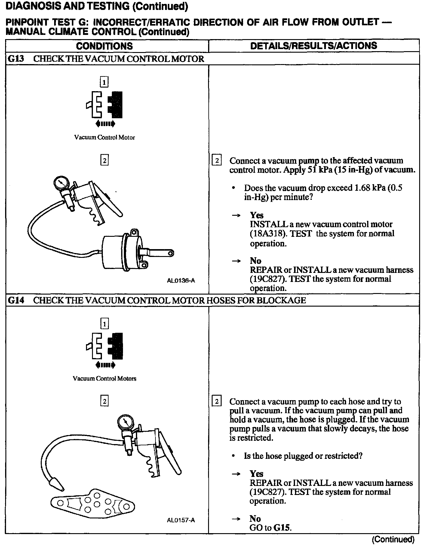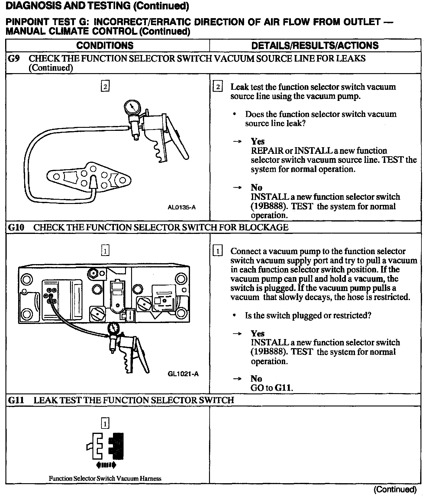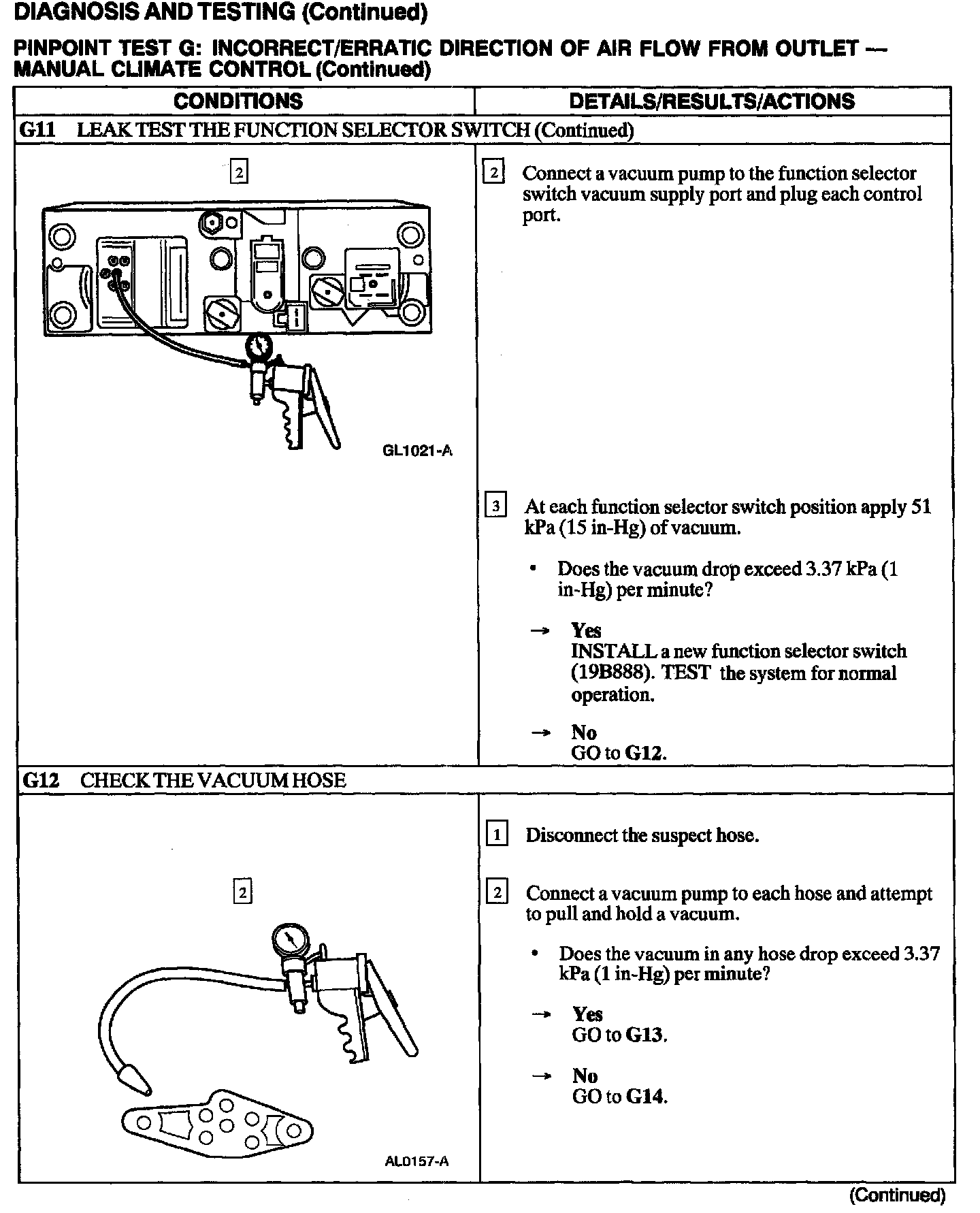 Test G: Incorrect/Erratic Air Flow From Outlet - Manual System