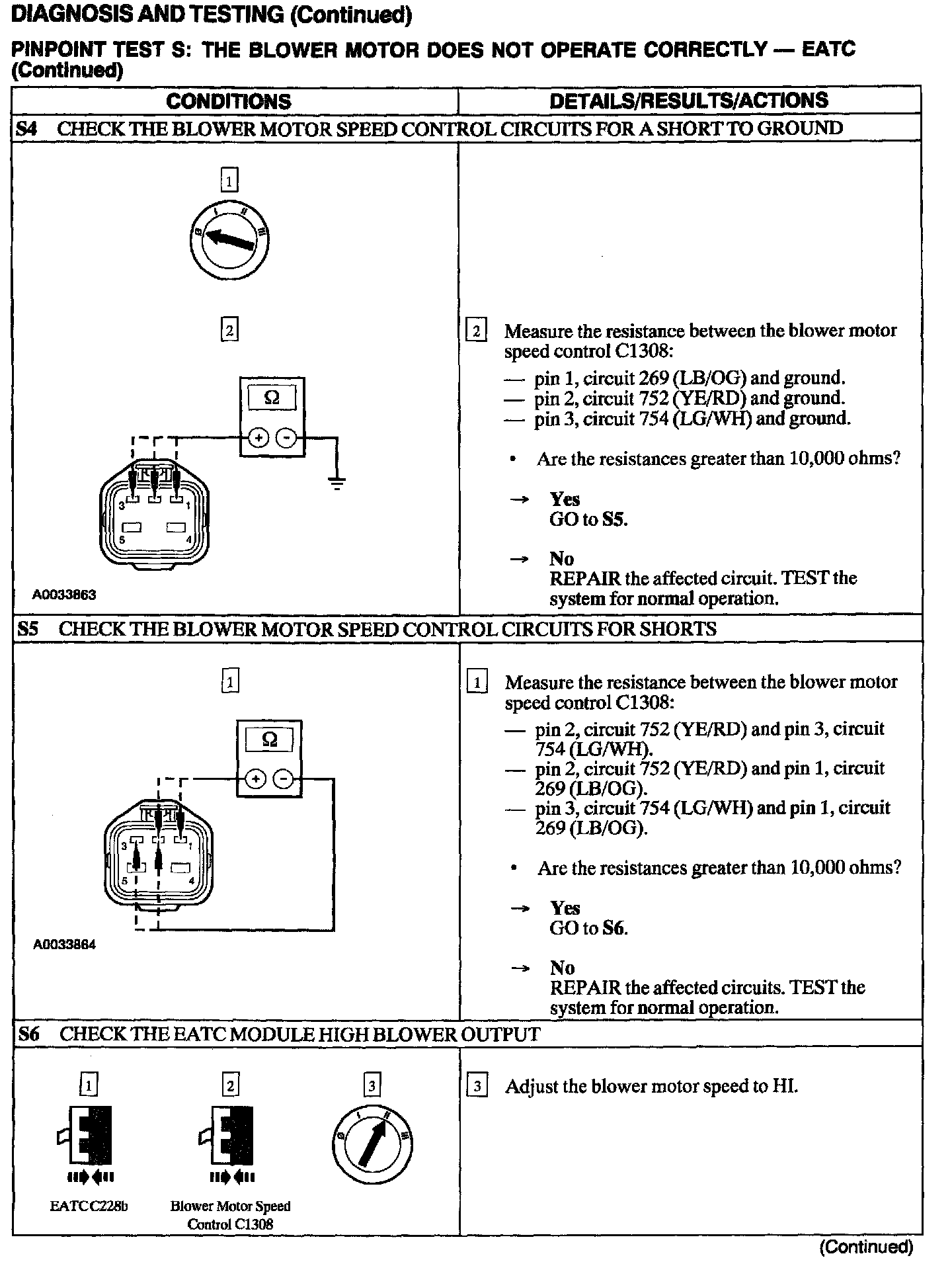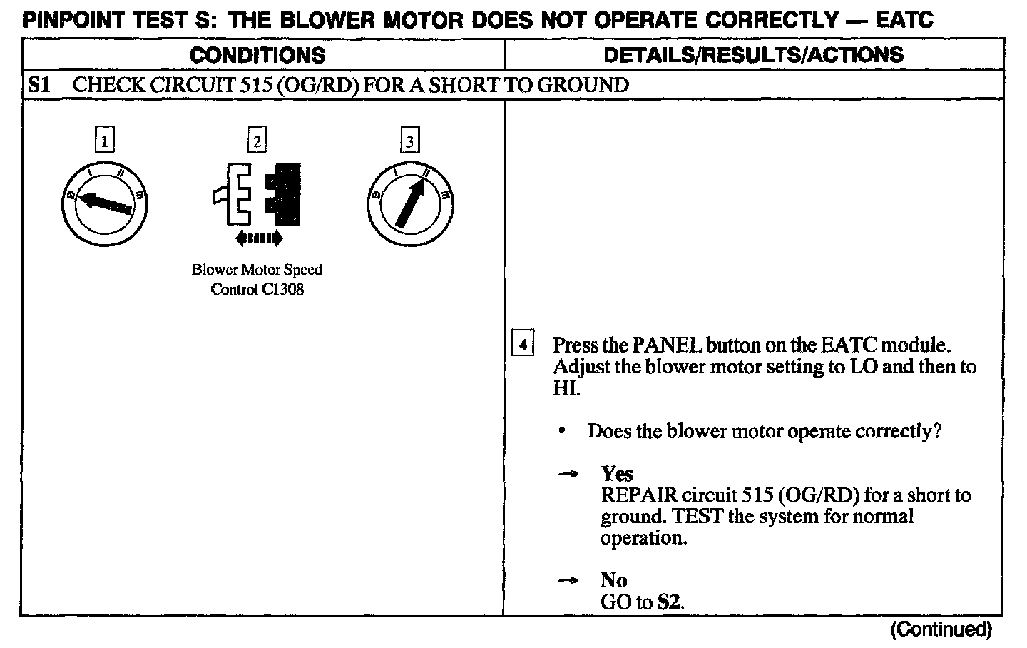 Test S: Blower Motor Does Not Operate Correctly - EATC