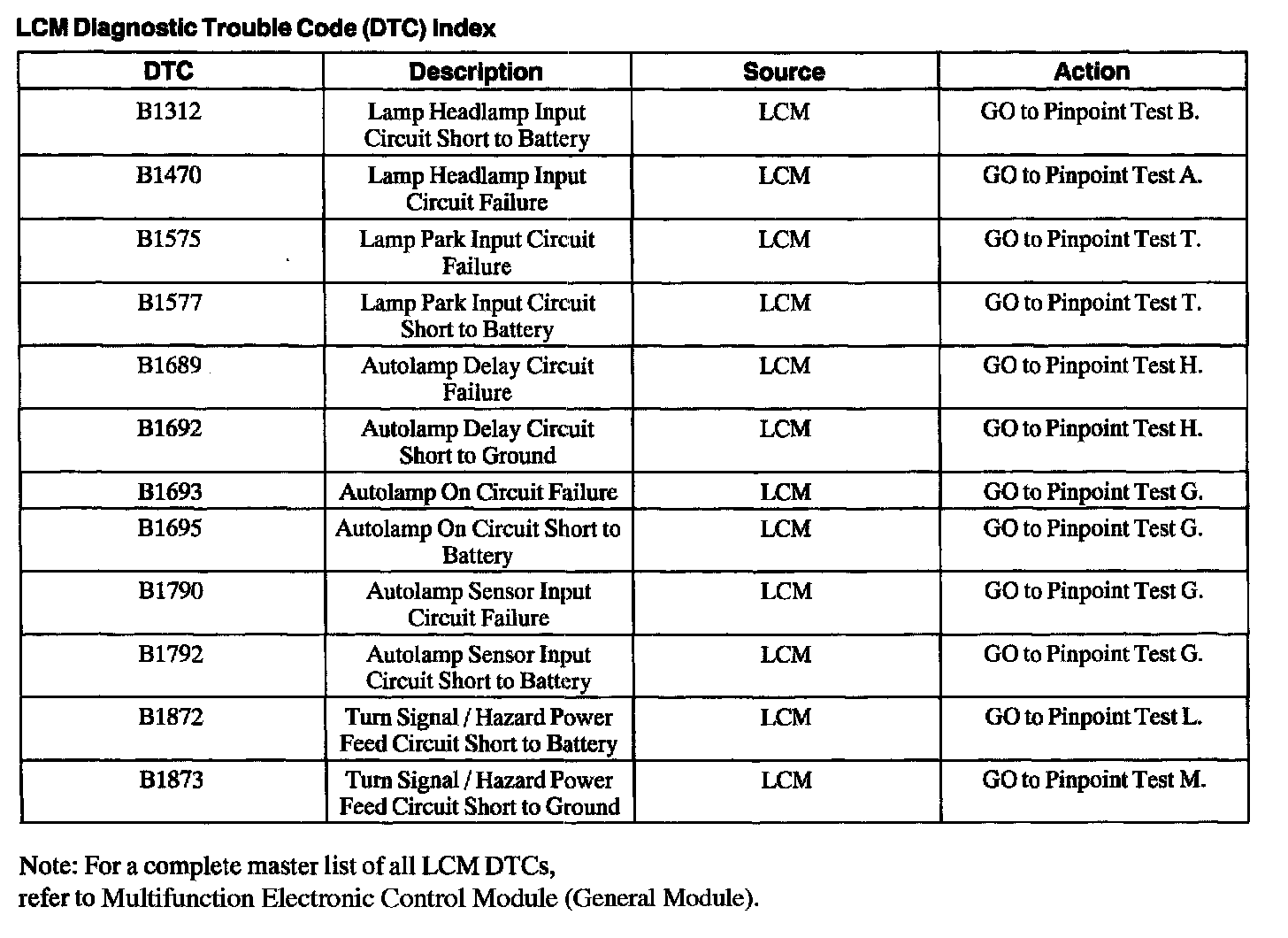 DTC Index B1312 - B1873: