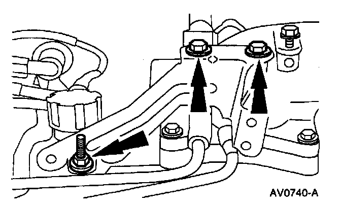 7. Remove the screws and the nut and remove the accelerator cable bracket.