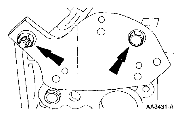 9. Remove the bolts and the generator mounting bracket.