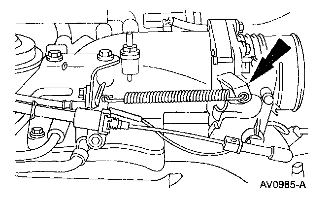 3. Disconnect the accelerator cable and the speed control actuator cable.