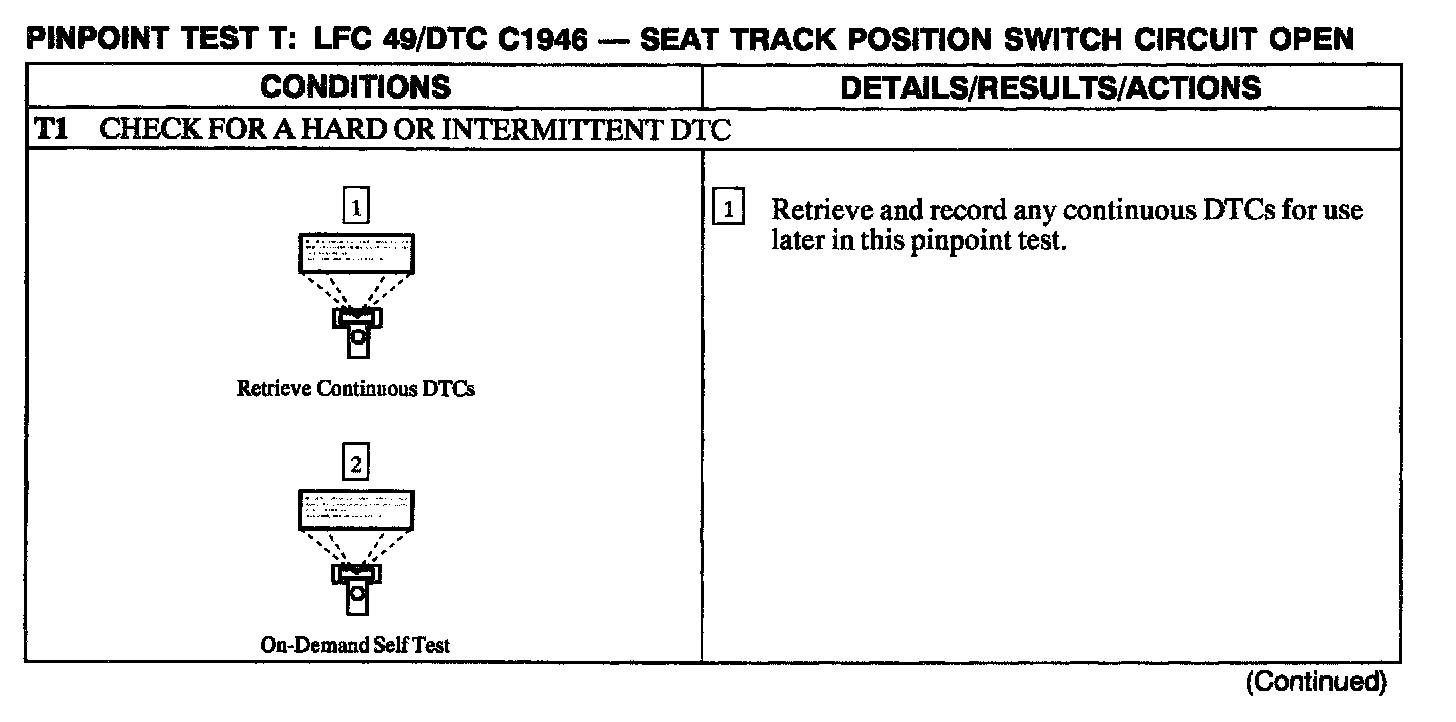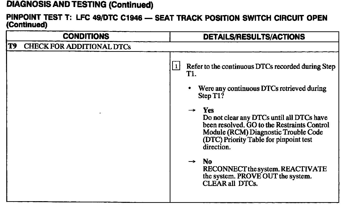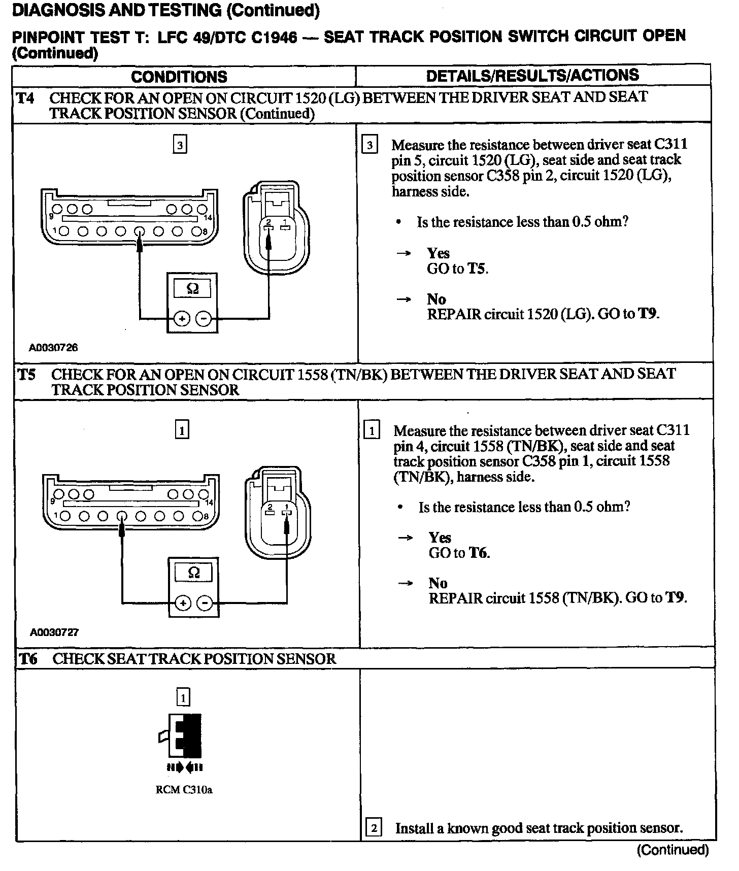 Test T: LFC 49/DTC C1946 - Seat Track Position Switch Circuit Open