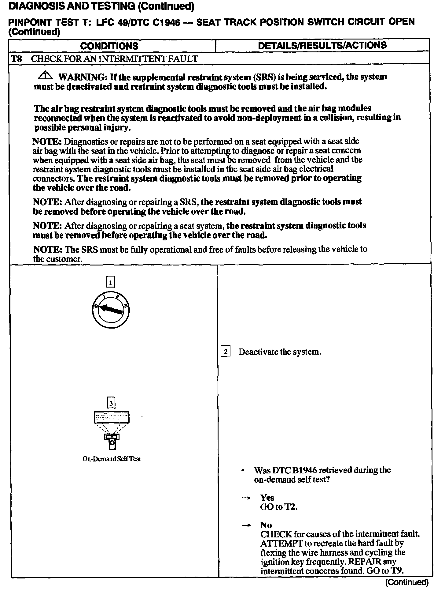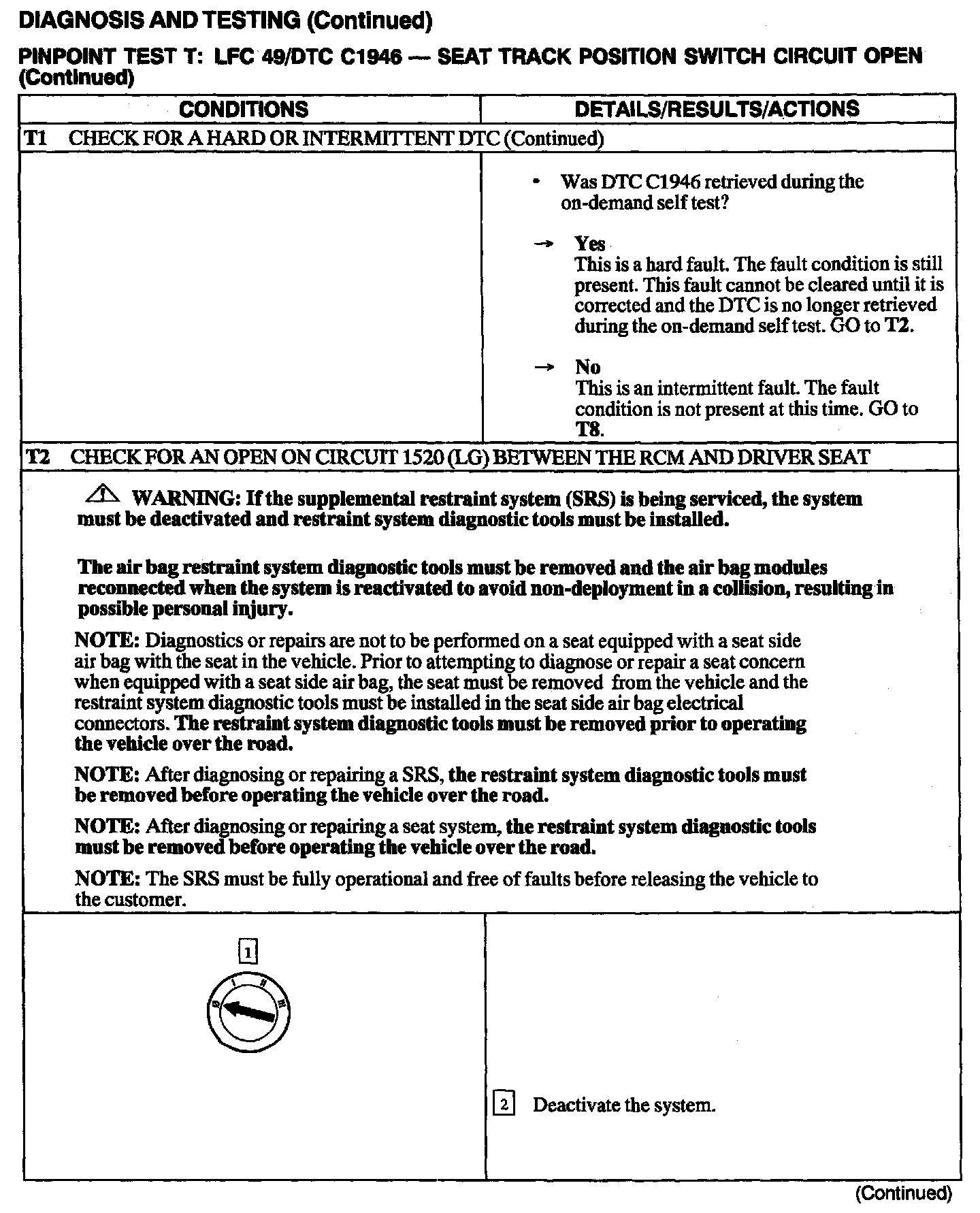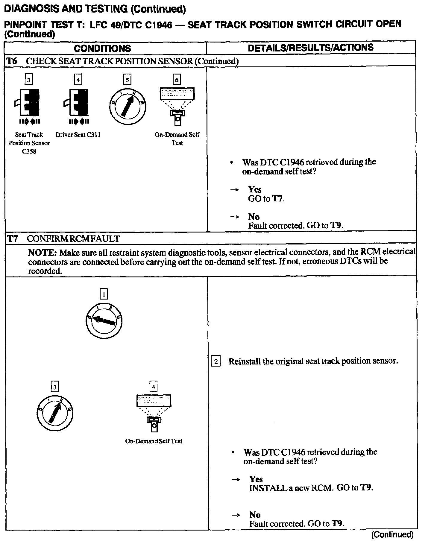 Test T: LFC 49/DTC C1946 - Seat Track Position Switch Circuit Open