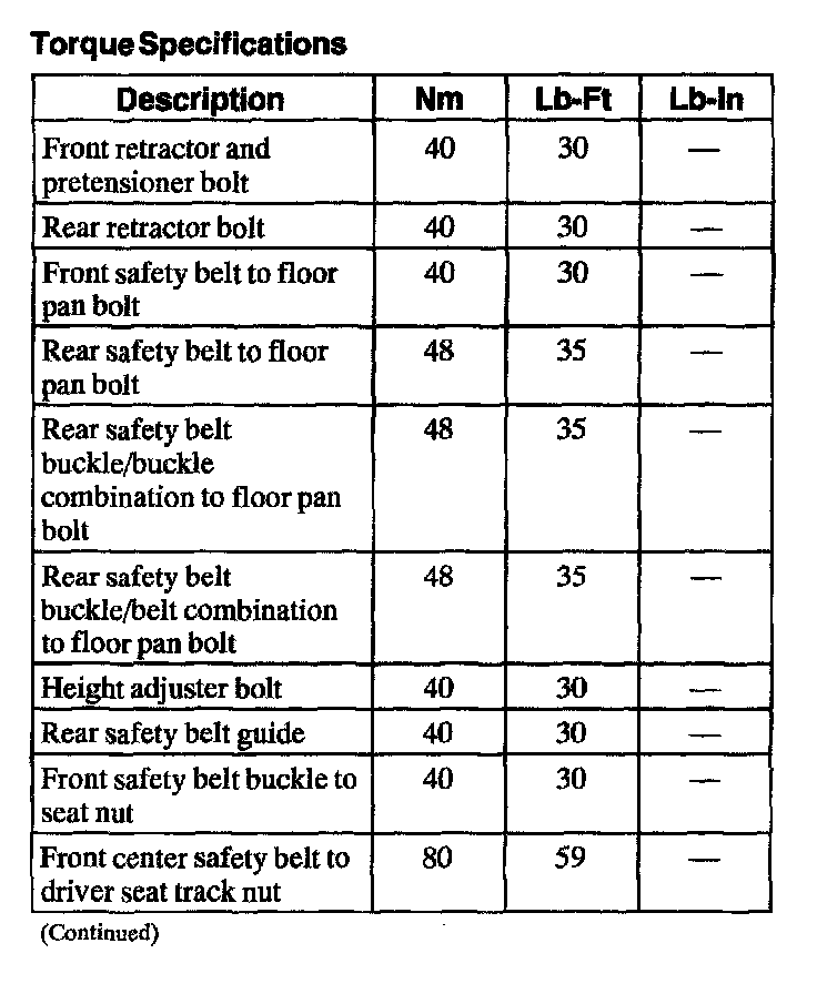 Seat Belt Systems: Specifications