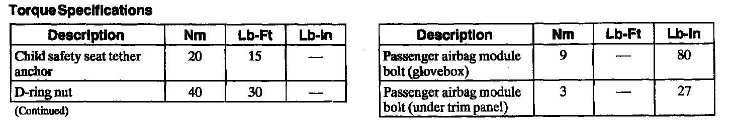 Torque Specifications, Part 1: