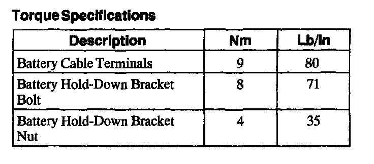 Torque Specifications: