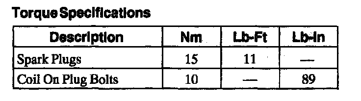 Torque Specifications: