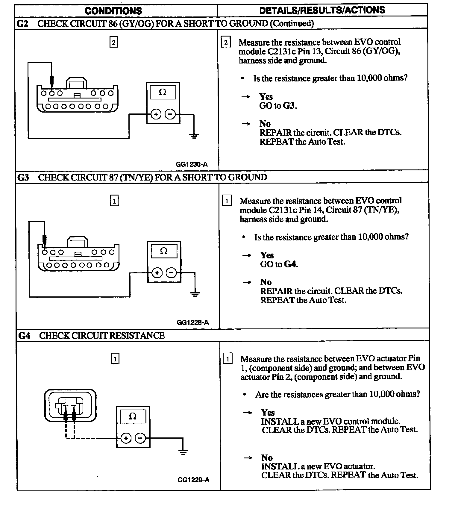 PINPOINT TEST G: DTC 28-EVO ACTUATOR CIRCUIT SHORTED