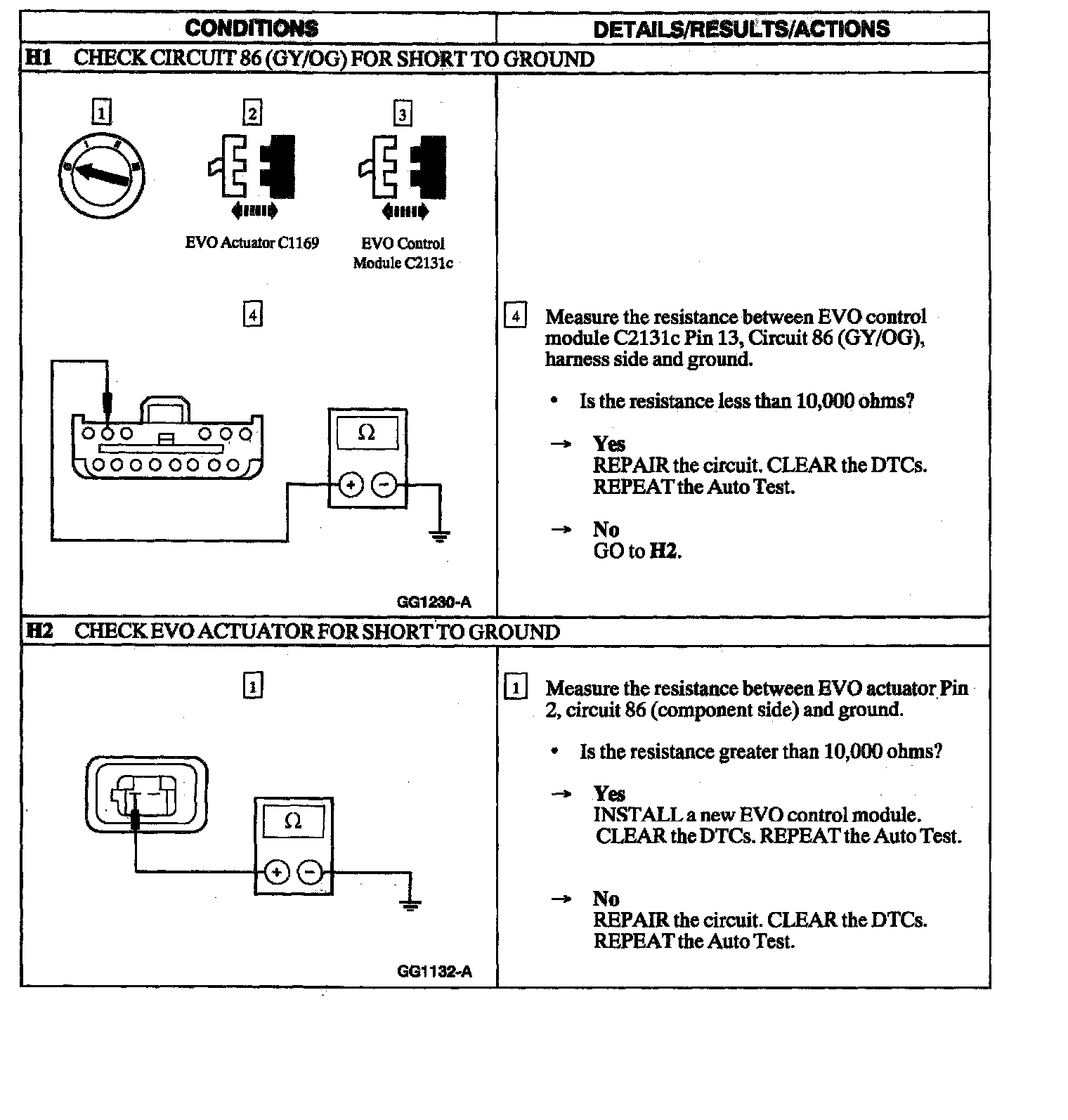 PINPOINT TEST H: DTC 29-EVO ACTUATOR CIRCUIT HIGH SIDE SHORTED TO GROUND