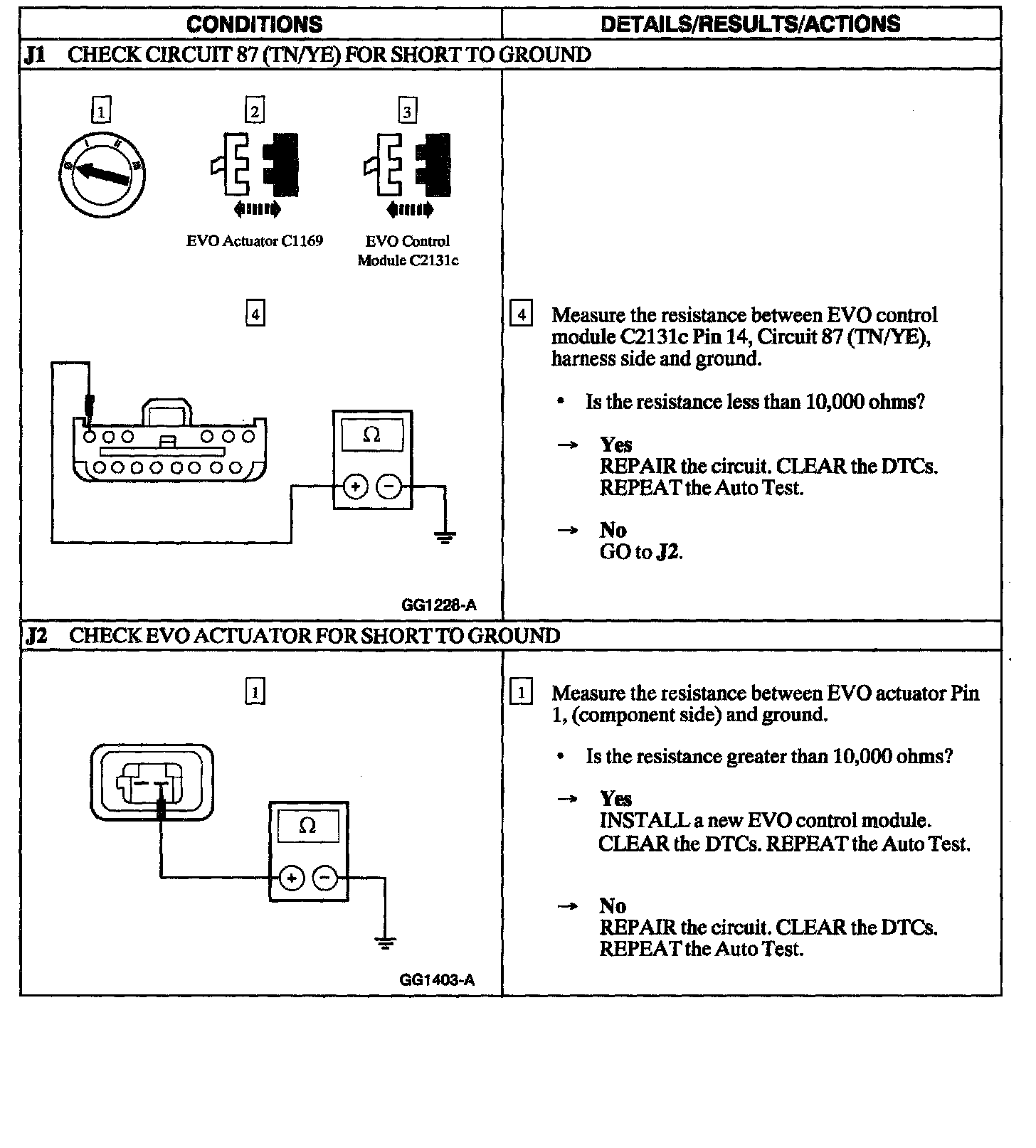 PINPOINT TEST J: DTC 31-EVO ACTUATOR CIRCUIT LOW SIDE SHORTED TO GROUND