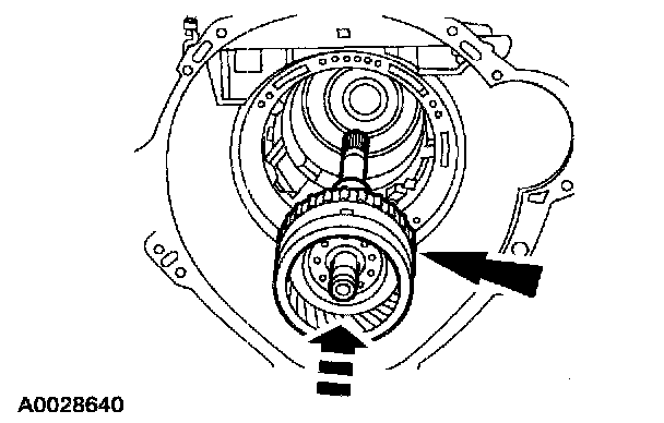 2 Maintaining downward pressure, use a depth micrometer to measure and verify intermediate clutch clearance is within specification.