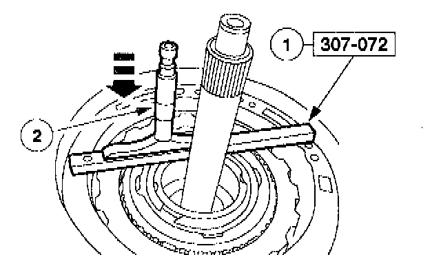 21. Using the special tool, compress the overdrive servo assembly and install the overdrive servo retaining ring.