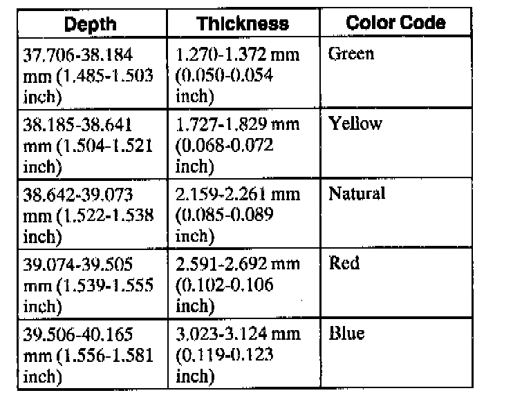 Use the No.1 thrust washer chart to select the correct washer.