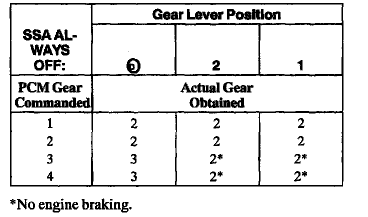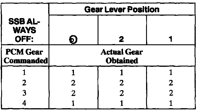 Shift Solenoid Failure Mode Chart "Always Off"